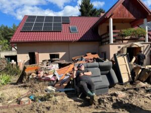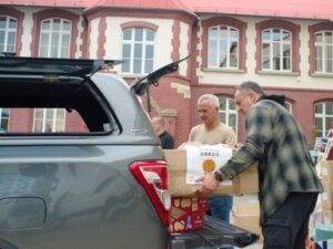 Już w środę 18 września wyruszył z Warszawy pierwszy transport pomocowy Misji Dobro Czynić. Dzięki wsparciu Centrum Dobra przy Społeczności Chrześcijańskiej Południe udało się załadować dwa busy. Po drodze dołączył do nas trzeci, załadowany w Społeczności Chrześcijańskiej w Głogowie i KCh w Polkowicach. W czwartek 19 września, współpracując z pastorem Adamem Dulińskim ze Społeczności Chrześcijańskiej Zachód i z Andrzejem Asijukiem ze Stowarzyszenia OM Polska, nakręciliśmy w Stroniu Śląskim i Kłodzku materiał, który już w następną niedzielę był udostępniony na youtube (www.youtube.com/watch?v=ljfnNej6fuk) i rozpowszechniany w kościołach i na platformach medialnych.