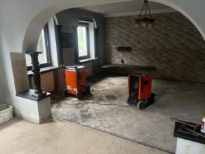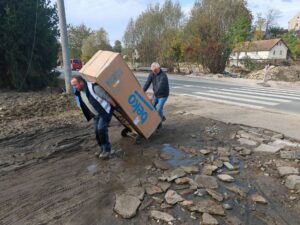 Kolejna forma pomocy to osuszacze – niezbędne w wyścigu z czasem, by zdążyć przed przymrozkami. Poszliśmy tutaj dwoma torami: Kancelaria Kościoła Chrystusowego pozyskała w Warszawie korzystne wypożyczenie 34 profesjonalnych osuszaczy, które na kilka tygodni trafiły do Nysy. I tam, pod nadzorem pastora Bartka Robela, we współpracy z miejscowym Ośrodkiem Opieki Społecznej, osuszały mieszkania powodzian. Zaś Misja Dobro Czynić zakupiła 18 używanych osuszaczy, sprowadzonych z zachodniej Europy, ale będących w bardzo dobrym stanie (z gwarancją). Trafiły one do Kotliny Kłodzkiej, gdzie nadal większość z nich wciąż jest w użyciu. Te wszystkie działania z osuszaczami nie byłyby możliwe bez logistyki i transportów, w których kilka razy wspomagali nas pastorzy Jacek Konicki oraz Adam Byra i Robert Bidas ze Społeczności Chrześcijańskiej z Sandomierza. Gdy w mieszkaniu było słychać pracę osuszaczy a obok trwało skuwanie tynku, wiele rodzin – nie mając innej możliwości – musiało żyć w takich warunkach, również bez podstawowych sprzętów AGD.