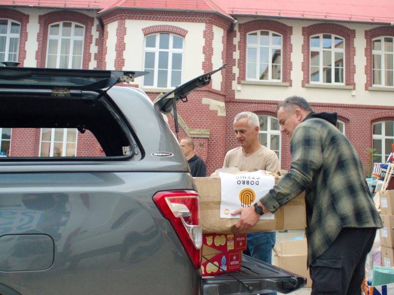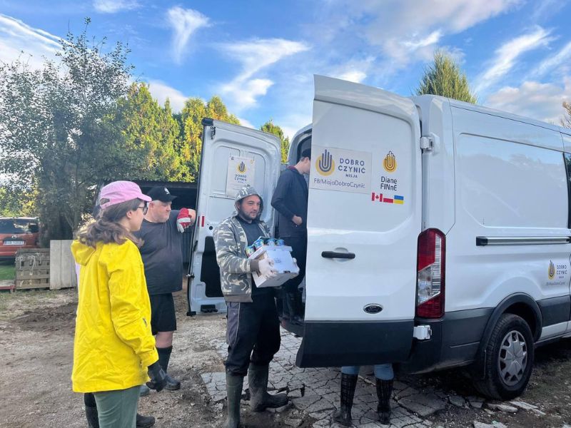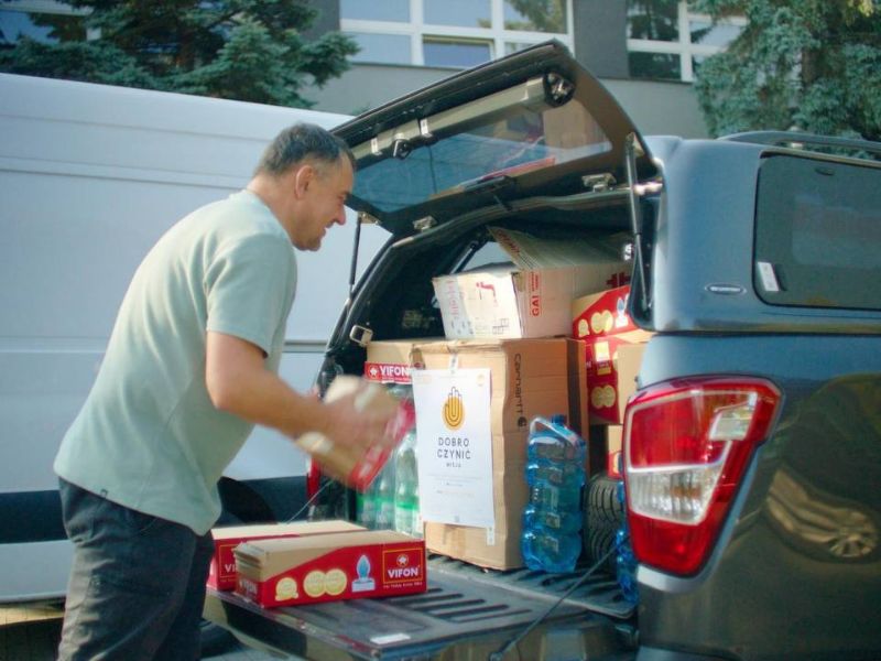 W pierwszych dniach powodzi koncentrowaliśmy się na żywnościowej pomocy humanitarnej. W sumie udało się wysłać z Warszawy 5 busów takich produktów. Do naszego magazynu w Centrum Dobra trafiły produkty nie tylko od osób indywidualnych, ale tez zebrane przez uczniów w szkołach Fundacji Samuel. Duży wkład miała też Fundacja Pomocy oraz korporacja Advantech.