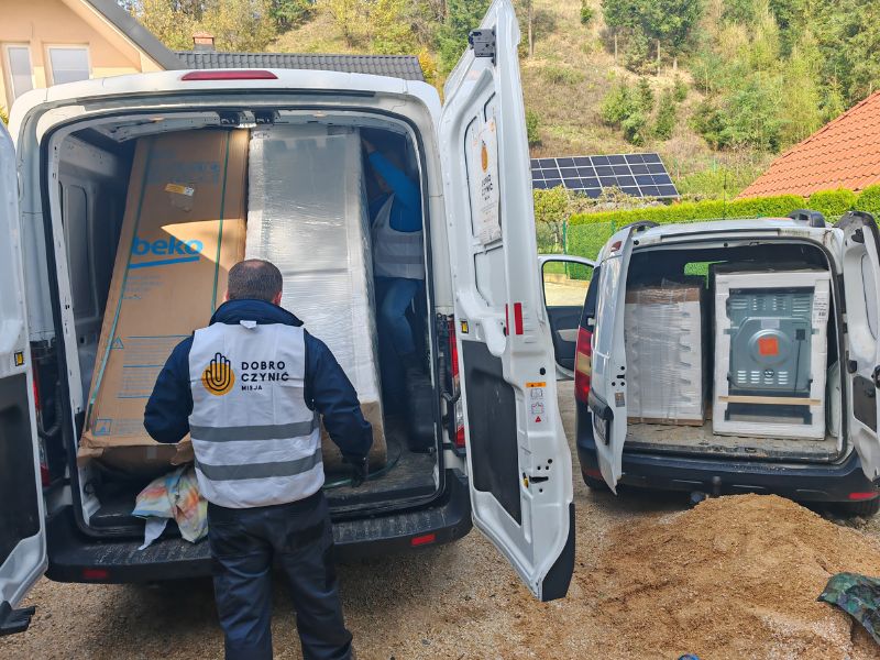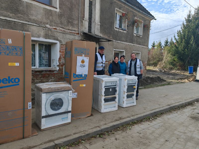 Dzięki m.in. pomocy od Samaritan’s Purse, Misja Dobro Czynić mogła też dostarczyć 22 sprzęty AGD (lodówki, pralki i kuchenki), kilka szafek i elementów łazienkowych, meble (wersalka, fotele) oraz ponad sto zestawów pościeli, poduszek i materaców. Taki sprzęt nigdy nie trafiał do przypadkowych osób. Były to rodziny znane lokalnym kościelnym liderom z Kłodzka, albo te, w których wcześniej z pomocą byli nasi wolontariusze. Dzięki pomocy pastora Marka Sobotki z SCh Południe udało się pozyskać 30 stołów, które trafiły za pośrednictwem pastora Bartka Robela do zalanej szkoły podstawowej w Nysie.