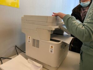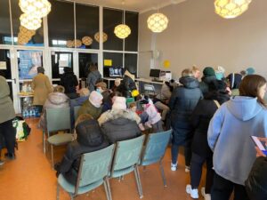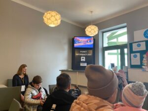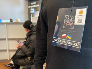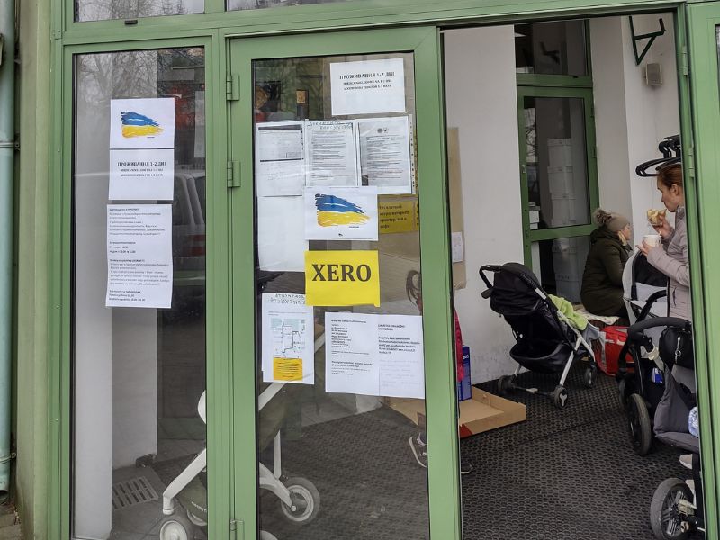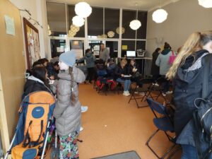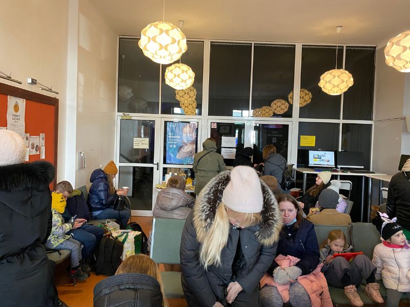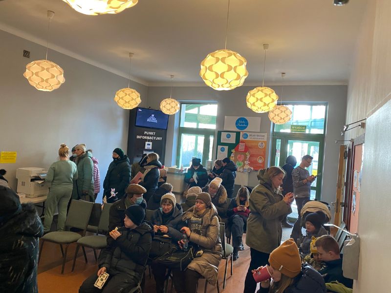 Około tydzień po wybuchu wojny w pobliżu kaplicy zaczęły pojawiać się osoby pilnie potrzebujące wykonać kserokopie dokumentów wymaganych w procedurach konsularnych. Widząc skalę potrzeb oraz niskie temperatury, zdecydowaliśmy się udostępnić pomieszczenia kaplicy i uruchomić Punkt Pomocy dla Ukraińców.